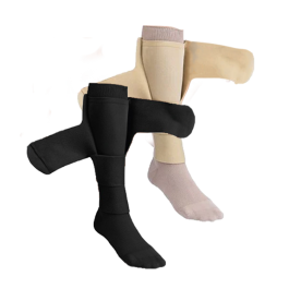How is the size selected? Measure ankle and calf at the points specified by the manufacturer, then match to the sizing chart for the selected length (for example, Small/Tall). If between sizes, follow clinician guidance. Can it be worn on either leg? Yes. The legpiece is universal for left or right use. Is it machine washable? Yes. Close the tabs, wash at up to 86 °F (30 °C), and air-dry away from heat. Can it be worn over a wound dressing? Yes, if the wound is appropriately dressed per clinician direction. Apply any liner first, then the wrap. Is a liner required? A thin liner is commonly used for comfort and hygiene. Follow the care plan provided by the clinician. When should it be worn? Compression wraps are typically worn during the day and removed at night unless the care team advises otherwise.