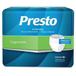 Presto FlexRight Underwear is an incontinence solution that offers a premium, flexible fit while protecting against large and small leaks. Designed with the FlexRight flexible stretch panel, they hug the contours of the body just like real underwear, making them the perfect mobile, discreet product for active individuals. This discretion does not come at the expense of absorbency and effectiveness — FlexRight Underwear features Presto's four proprietary absorbency technologies to set the wearer's mind at ease. For a higher level of absorbency, Presto FlexRight Overnight Underwear is designed for longer daytime use and for sleeping. Presto FlexRight's range of absorbency makes them the perfect product for individuals who won't let incontinence get in the way of living life to the fullest.