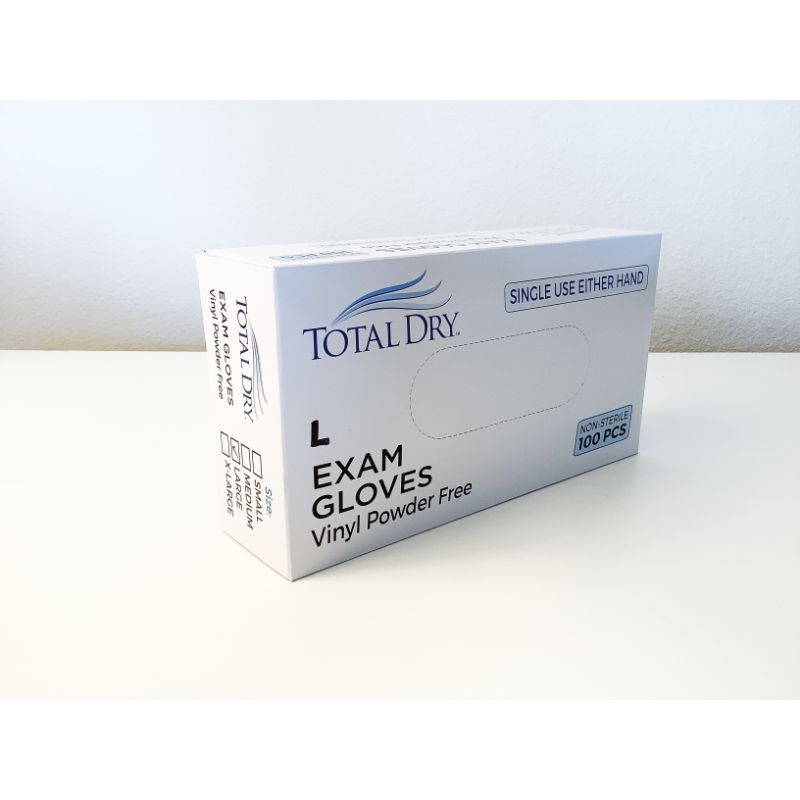 Total Dry Vinyl Powder-Free Exam Gloves, Large - REPLACES TDRVGPF3003 case of 100